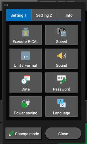 The user can check the overview of the test conditions, set the sound, configure power saving settings, and set the system language. In addition to improving operational efficiency, pop-ups that check operations prior to movement reduce the risk of operational mistakes.