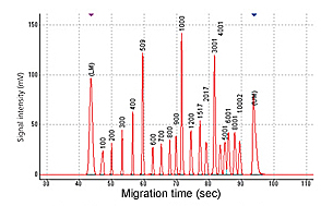 Shimadzu's BioMEMS microchip technology not only enables high-speed analysis, but also achieves high separation performance and reproducibility. Our newly developed separation buffer, analytical method and automation technology overcome the shortness of the effective separation length. Shown below are examples that demonstrate the enhanced analytical performance.