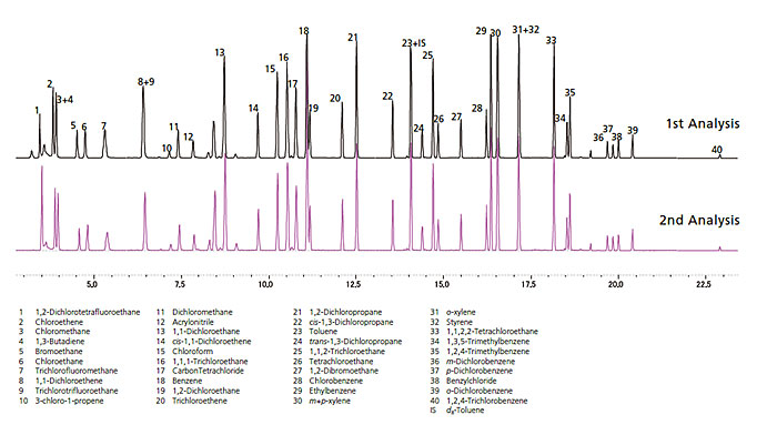 With time-consuming air sampling measurements, if analysis fails, re-measurement can be expensive. The risk of analysis failures can be lowered by using the TD-30R restore and internal standard additive functions.