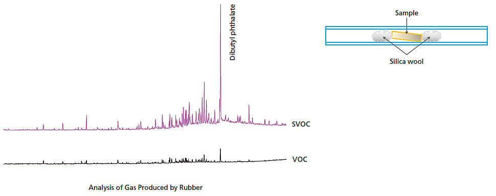 With VDA278, the diffused gas measurement method for automotive parts, the tube is filled with the specimen, and then heated to 100 °C before the VOCs are measured. Afterwards, the sample is removed, the tube is heated to 280 °C, and the adhered SVOCs are measured. Because tubes are easily accessed from the TD-30 series sample tray, procedures are easy.