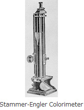 | A photoelectric tube is a vacuum tube that uses the photoelectric effect to convert light energy into electrical energy. A photomultiplier tube adds current amplification functionality to the performance of a photoelectric tube. At present, photomultiplier tubes are used as the detector in UV-VIS spectrophotometers. | A colored liquid will absorb light at a specific wavelength. Using this phenomenon, a colorimeter measures light by utilizing a glass filter through which light at this specific wavelength passes. Various types of colorimeters have been developed. The photograph shows a Stammer-Engler colorimeter. | This is a type of discharge tube containing a minute quantity of hydrogen and is used as an ultraviolet light source. When such tubes contain deuterium, they are referred to as deuterium lamps. Deuterium lamps are used in UV-VIS spectrophotometers because they have strong irradiation intensity in comparison to light hydrogen. |
