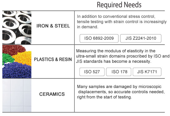 In addition, the AUTOTUNING FUNCTION easily performs strain control, an ISO6892-2009 requirement.