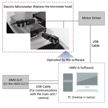 The electric XY stage function can be used by replacing the micrometer head on the HMV-G31 manual stage. It can be installed in existing HMV-G21/HMV-G31 systems.