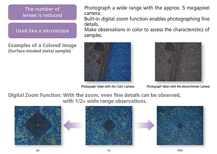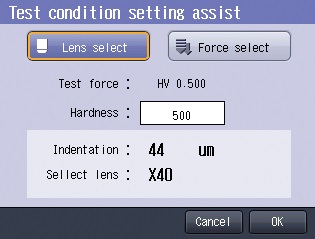 The system is equipped with a test conditions assist function that determines the optimal lens or the optimal test force from the anticipated hardness.