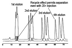 Components that are difficult to separate can be recovered at high purity level. In a closed valve recycling method, the eluate containing the target compounds after separation is recycled into the column, offering an equivalent separation capacity to that of a longer stationary phase. This is the optimal system for obtaining high separation efficiency at low cost.