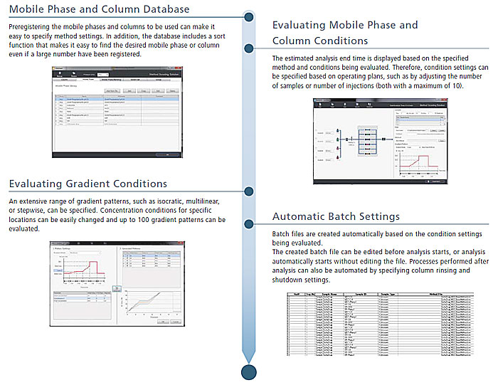 - With a single click, up to 100 combinations of mobile phases, columns, and gradient elution specialized software.