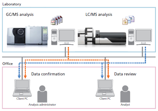 Data acquired from multiple analytes can be reviewed or confirmed using client computers connected via a LAN or other network. If multiple systems are used, data obtained from each system can be reviewed from any client computer. Even in the case of multiple analysts using the same system, the ability to separate analytical work from measurement work improves work efficiency.
