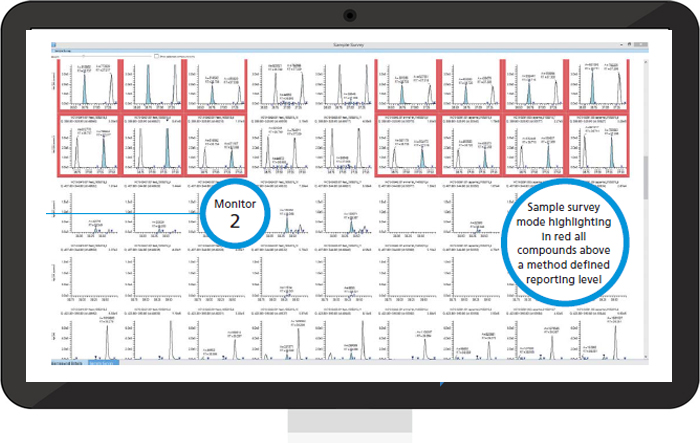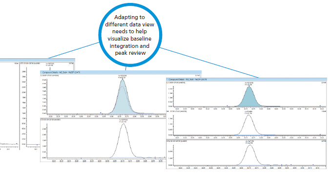 | Multiple data review tools | : save time by reviewing flagged chromatogram peaks in sample survey mode or quickly check peak quality by the compound detail mode. |