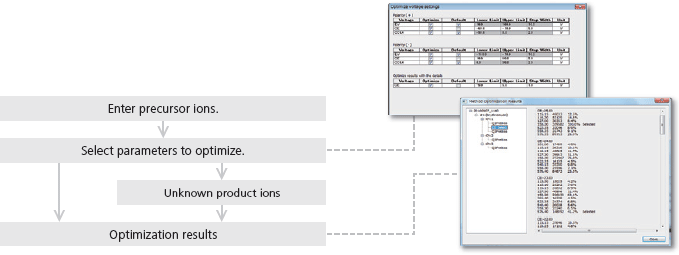 Flow injection analysis enables rapid and unattended optimization of MRM conditions for multiple compounds. The LCMS-8050 provides good optimization results even at high speeds.