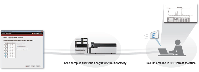 Quan Solution allows users unfamiliar with LCMS software to perform LC/MS/MS analysis using pre-set methods. Utilizing a software wizard, it’s possible to start analyses through the presentation of simple-to-follow on-screen instructions.