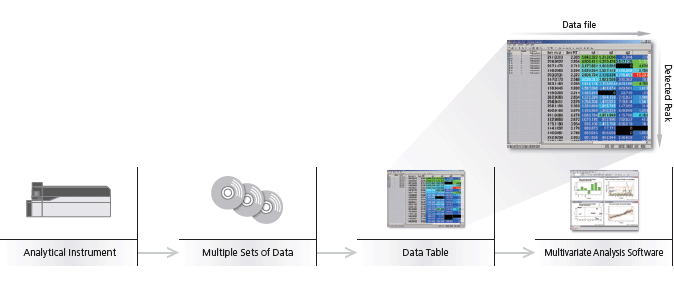 Used to compare and contrast the vast amount of data obtained from multiple chromatographic sets, this software extracts and tabulates all peaks found in multiple data files to create the peak tables required for multivariate analysis.