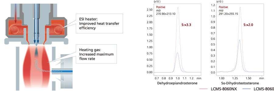 A new heat-assisted design improves the desolvation efficiency and dramatically enhances the sensitivity for challenging molecules such as steroid hormones.