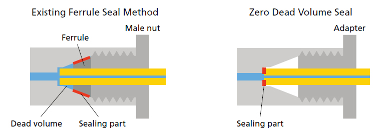 System volume and gradient delay are minimized with the newly developed “programmable loop cut-off mechanism,” which automatically diverts the sample loop from the flow line using a high-pressure valve as soon as the sample in needle is drained. This is extremely important in minimizing microflow analysis run times.