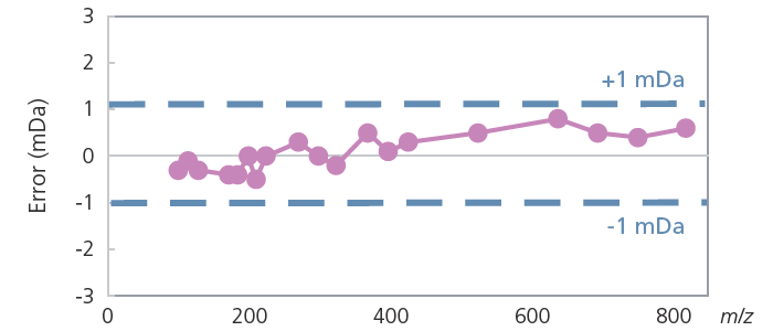 Mass measurement accuracy (MMA) is the key performance attribute underlying all application fields using high-resolution accurate-mass (HRAM) spectrometers. The LCMS-9030 delivers the MMA needed for high-confidence identification of unknown compounds at an unprecedented level of stability.