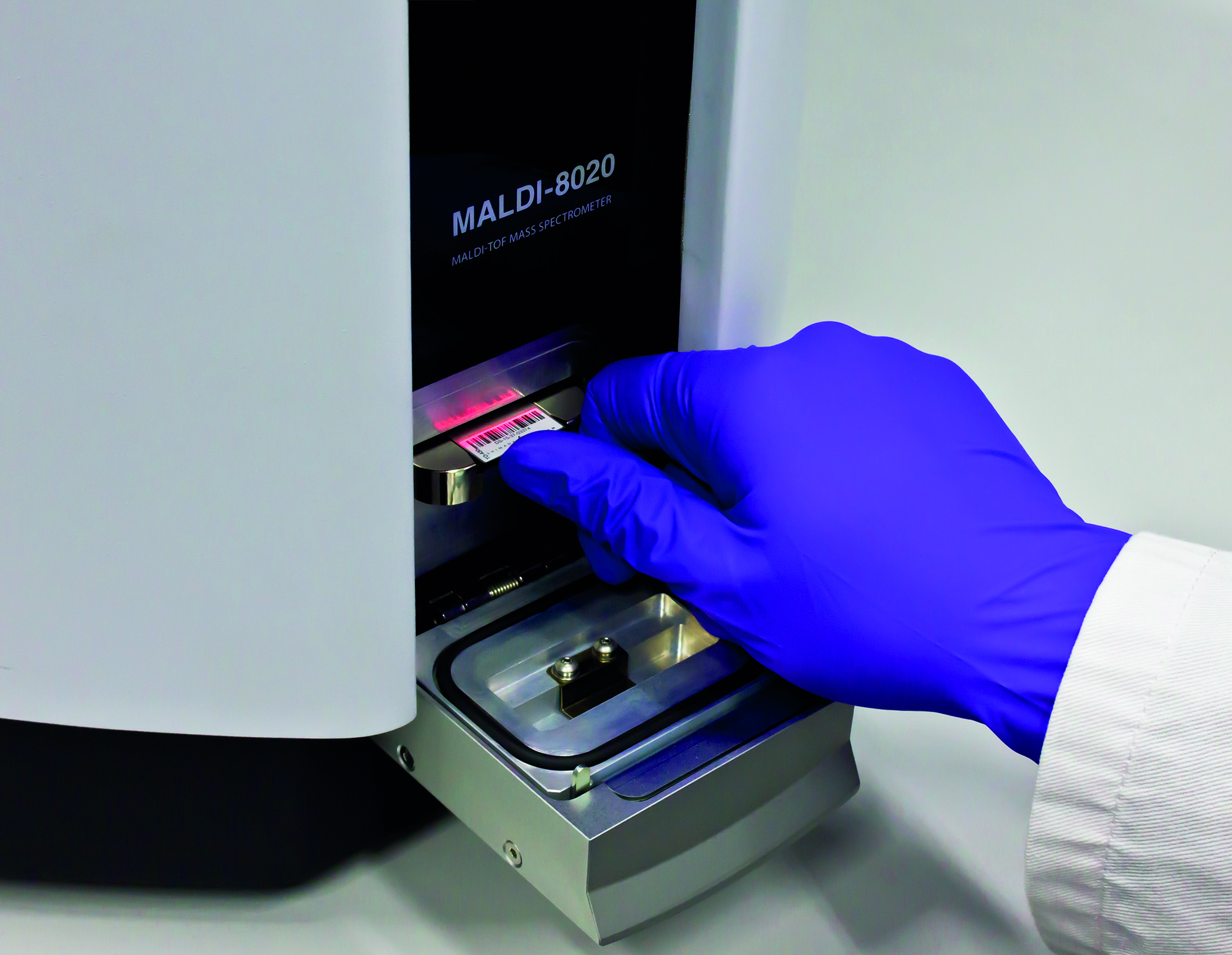 During insertion of a FlexiMass-DS MALDI slide into the instrument, the AuraSolution software uses the integrated barcode reader in the MALDI-8020 MALDI-TOF mass spectrometer to automatically retrieve and load the corresponding sample worklist. This approach acts as an additional safety mechanism to prevent mismatch errors between sample ID and analyzed results, providing a solution for laboratories where quality assurance is a priority.