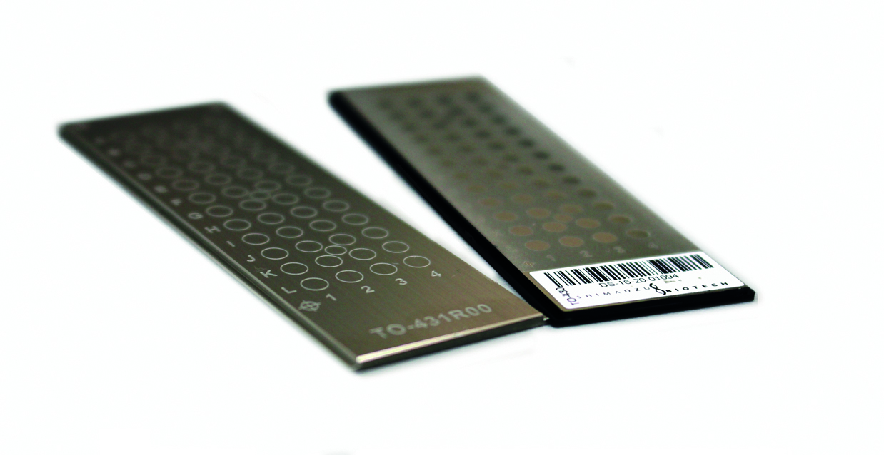The SampleStation and AuraSolution software are compatible with the FlexiMass series sample slides (FlexiMass-SR48 (left) and FlexiMass-DS (right) shown)