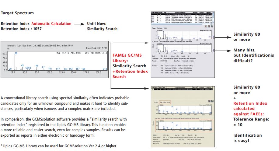 Lipids GC-MS Library Version 1.0 for GCMS-QP2020 single quadrupole and GCMS-TQ triple quadrupole series