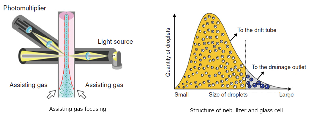 It also includes a mechanism for focusing samples at the detection point with assist gas, achieving even higher sensitivity.