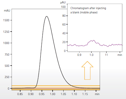 Excellent reproducibility for low injection volume less than 1 μL, wide range of linearity range and ultra-low carryover (<0.0025%) improve the reliability of data, especially for analyses of precious biological samples and direct analyses of concentrated samples.