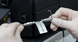 With UF-Link, a column-MS interface connection mechanism for Shimadzu micro LCMS systems, simply place the column in the column oven and swing over the lever to provide improved sensitivity, without the risk of sample diffusion outside the column.