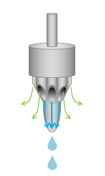 Decreases flow rate without increasing the pipe diameter by splitting flow through multiple channels. The CO2 is discharged externally while the liquid travels along the column and drips directly into the collection vessel without dispersing or spattering the eluate.