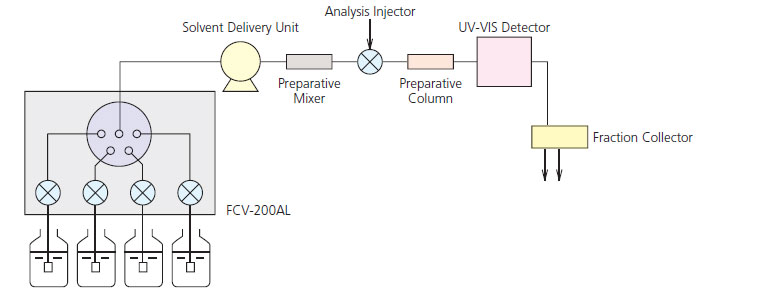 - The FCV-230AL provides switching between two solvents (optionally four solvents). It can be controlled from the LC-20AP/20AR front panel directly or through a system controller CBM-20A/20Alite and workstation software.