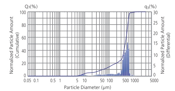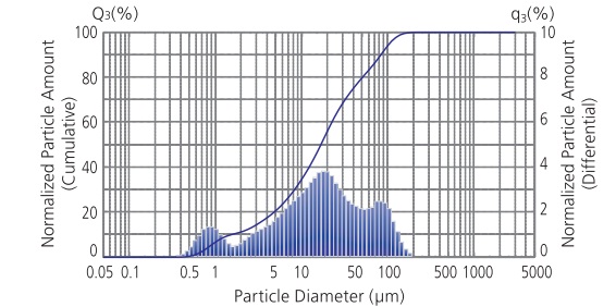 - Magnetized particles, which are easy to cohere in liquid, can be strongly dispersed into air using the type-1 injection nozzle. Therefore, accurate measurement results can be obtained. (In wet measurement, good results may not be achieved because the magnetic particles are prone to agglomeration in liquids.)