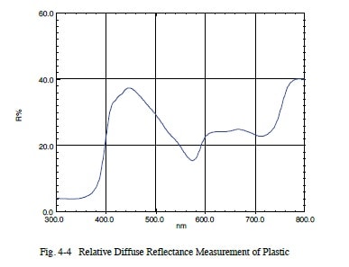 Fig. 4-4 shows the results from measuring the relative diffuse reflectance from a plastic surface using an integrating sphere with barium sulfate as the white reference plate.