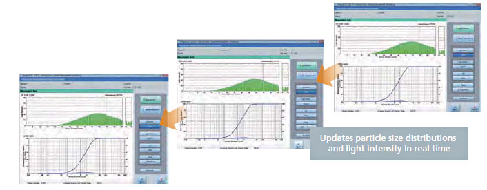Particle size distribution data and light intensity distribution data can be displayed in real-time