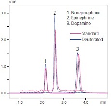 Detection of Norepinephrine, Epinephrine and Dopamine and their deuterated internal standards in plasma
