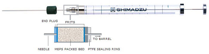 The MEPS Barrel Insert and Needle (BIN) assembly contains the stationary phase, and is built into the syringe needle.