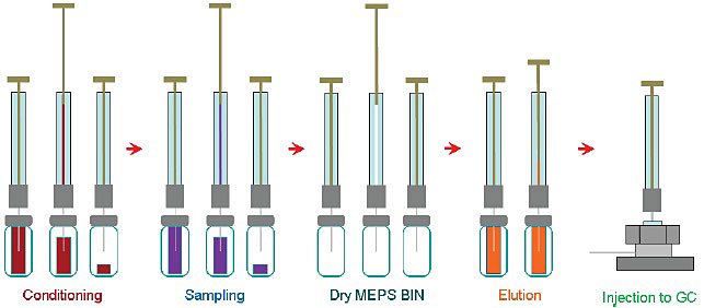 MEPSTM is Micro Extraction by Packed Sorbent and is a development for sample preparation and handling. MEPS is the miniaturization of conventional SPE packed bed devices from milliliter bed volumes to microliter volumes. The MEPS approach to sample preparation is suitable for reversed phases, normal phases, mixed mode or ion exchange chemistries. MEPS is available in a variety of common SPE phases.