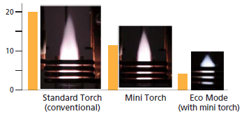 Mini-torch is designed to have only half the cross sectional area of standard torches. Applying the same high-frequency output to the smaller cross section increases the energy density per cross section. This improves the excitation efficiency, resulting in higher sensitivity.