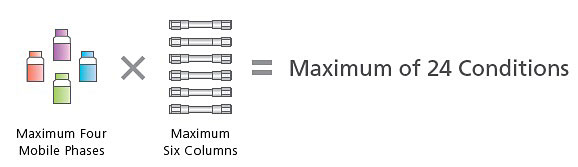 i-Series Plus is now compatible with method scouting systems.* Attaching a flow line switching valve allows up to six columns and four mobile phases to be switched automatically for analysis and to obtain optimum conditions for separation. Many i-Series Plus systems are used in manufacturing departments and other areas due to their simplicity, and performing method development with the same system improves the efficiency of method migration operations.