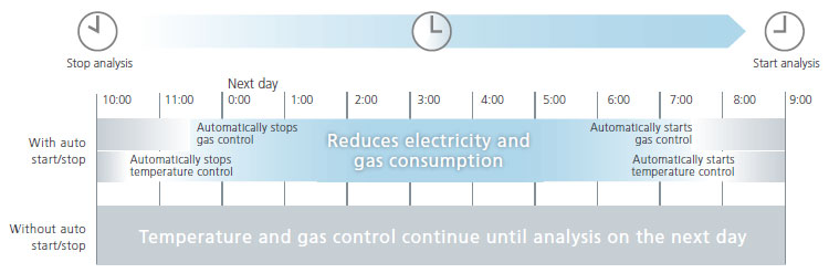 The Nexis GC‒2030 includes various monitoring functions. These functions remind users when to replace consumables and help ensure data quality. Power consumption can also be monitored in real time.
